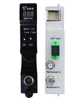 GSDT-FTX光發(fā)射機(jī)模塊是專門為現(xiàn)在和將來之HFC及FTTH應(yīng)用而設(shè)計(jì)的1310nm直調(diào)光發(fā)射機(jī)。發(fā)射機(jī)使用高性能制冷型1310nm DFB光源,采用先進(jìn)的預(yù)失真電路,使系統(tǒng)具有良好的CTB和CSO特性,其嵌入式單片機(jī)處理電路監(jiān)測(cè)和控制所有的參數(shù)狀態(tài)及遠(yuǎn)程通信,可以通過訪問前面板之LED或EMS設(shè)備管理模塊來獲取這些參數(shù)信息。