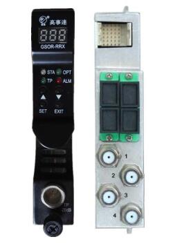 GSOR-RRX回傳光接收模塊由低噪聲的PIN光電二極管和高輸出電平的射頻放大器組成,具四路光輸入端口及兩路射頻輸出端口,可提供45dBmV的射頻輸出電平?;貍鞴饨邮漳K具有嵌入式單片機(jī)處理電路,可通過(guò)訪問(wèn)其前面板之LED或EMS設(shè)備管理模塊來(lái)獲取其參數(shù)信息。